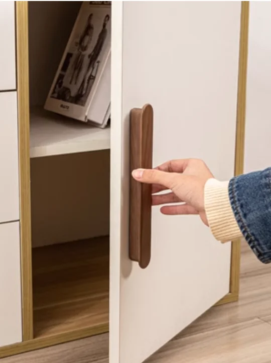 Nordic Wood Furniture Handles OAK Walnut Knob Wooden T Bar Wardrobe Pulls Luxury Decoration Wooden Funiture Hardware